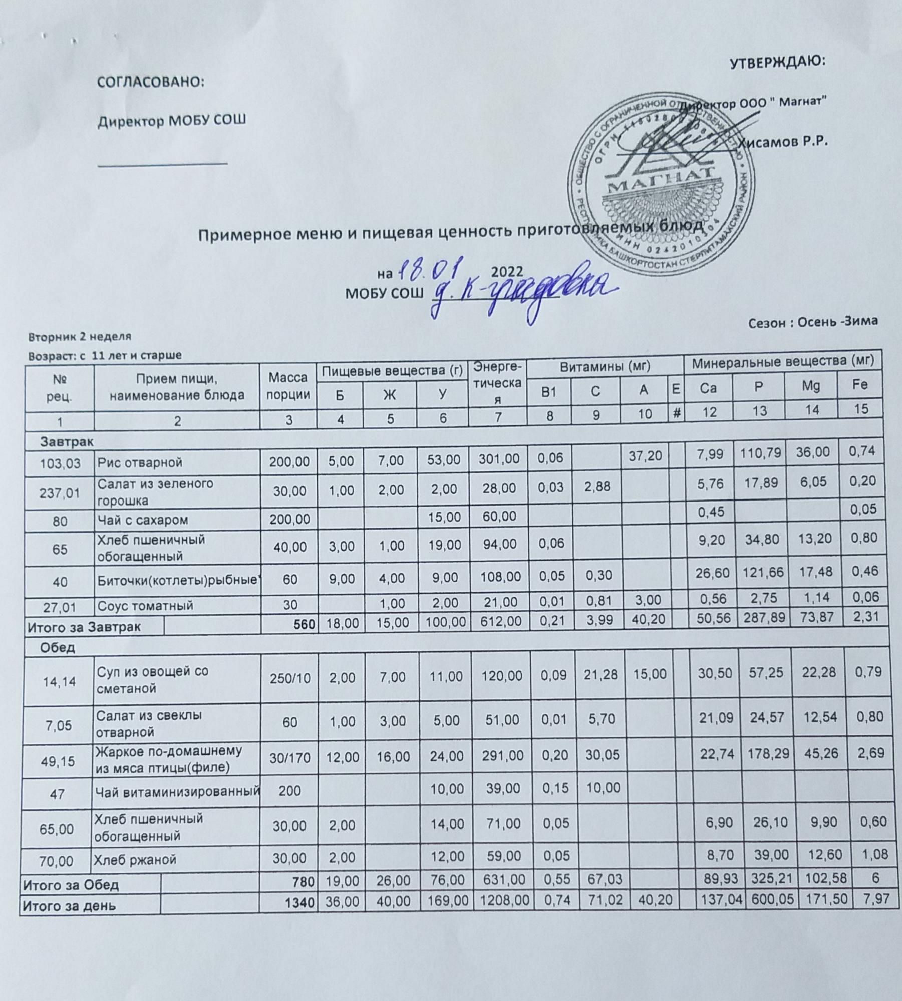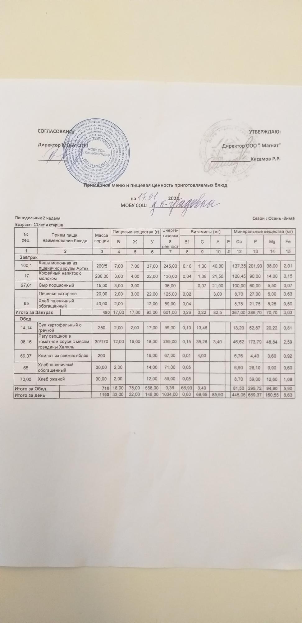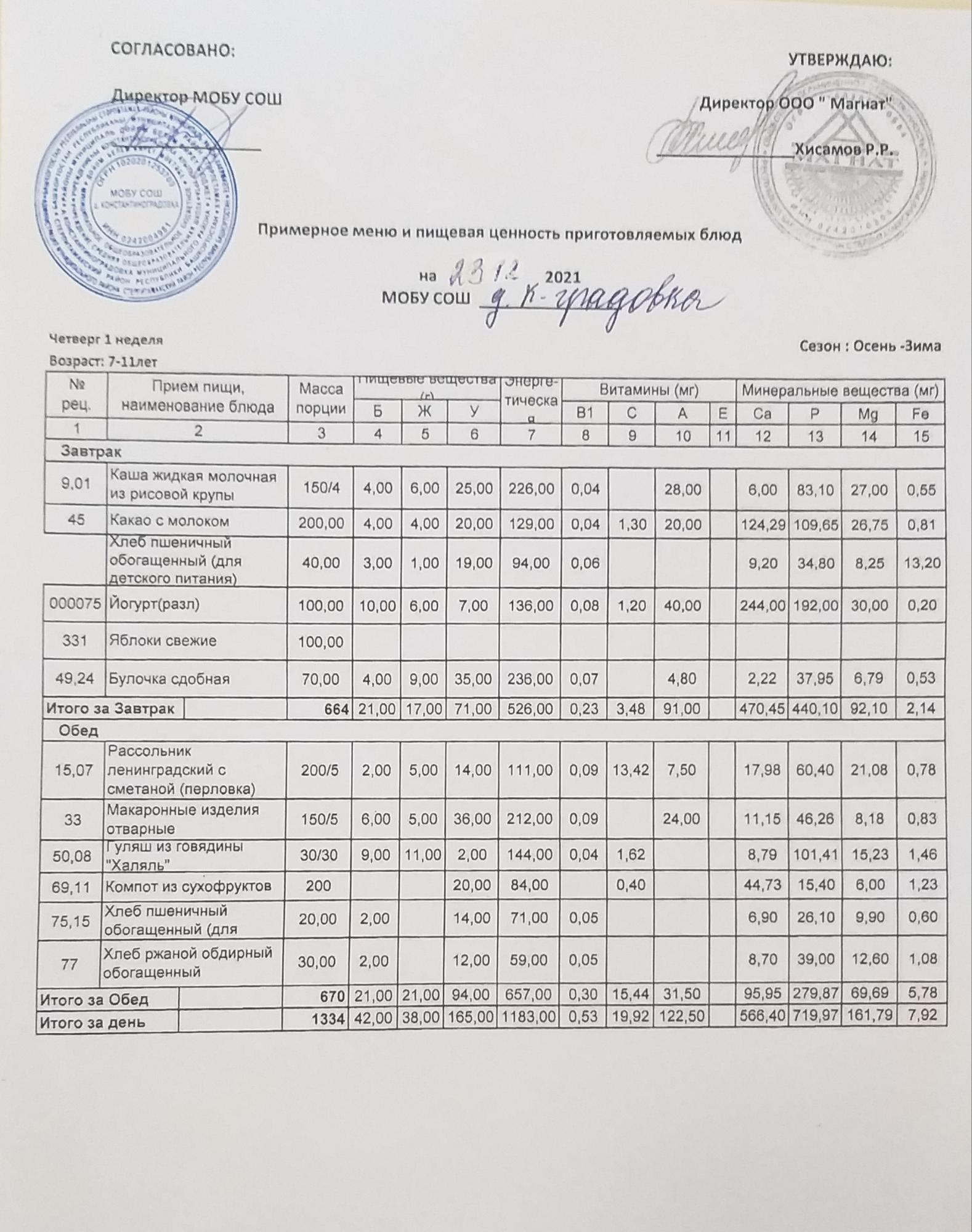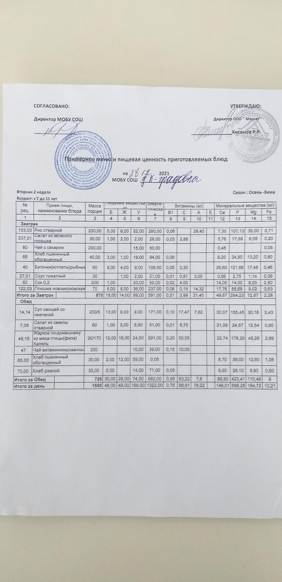 Организация питания в образовательной организации