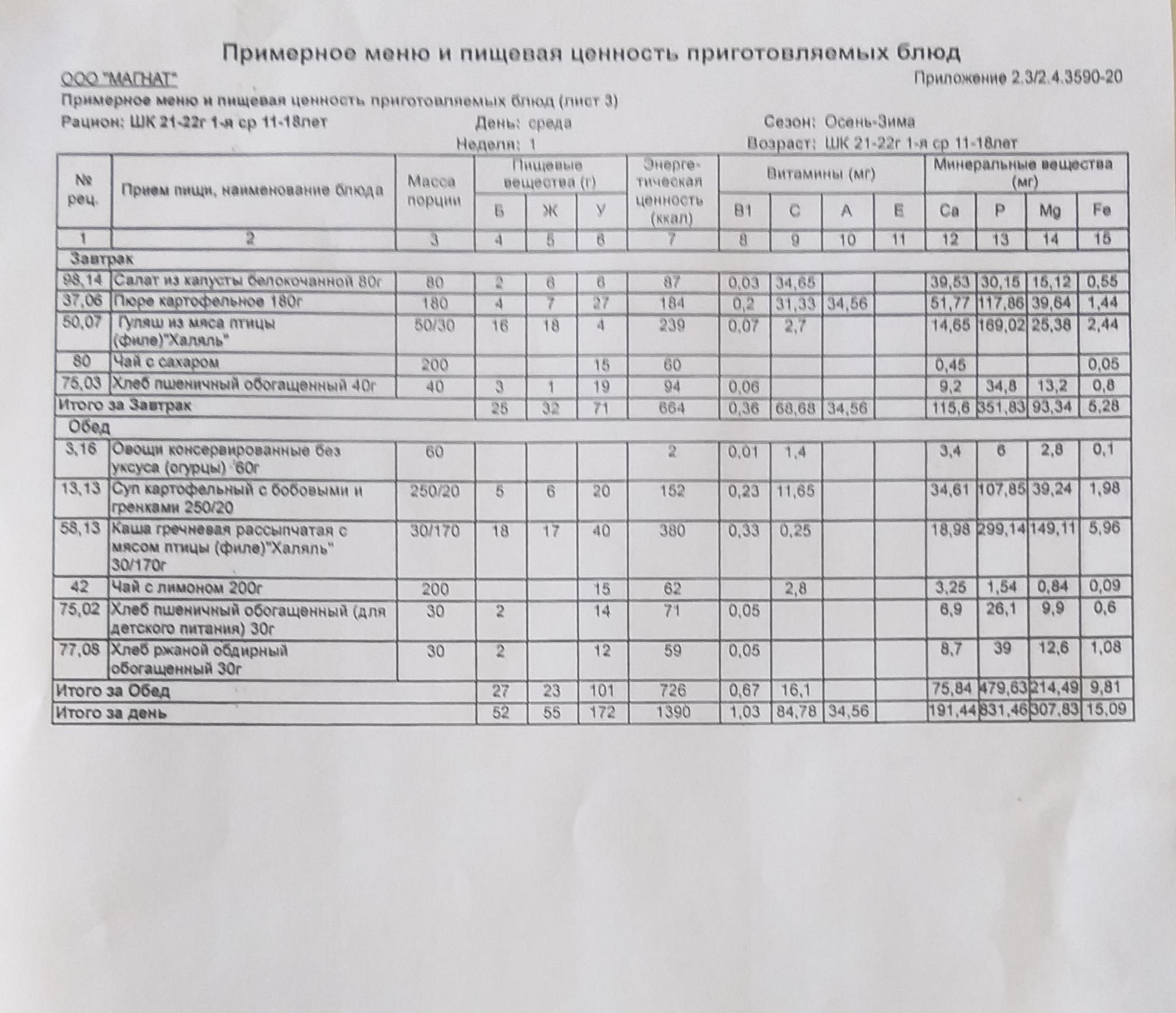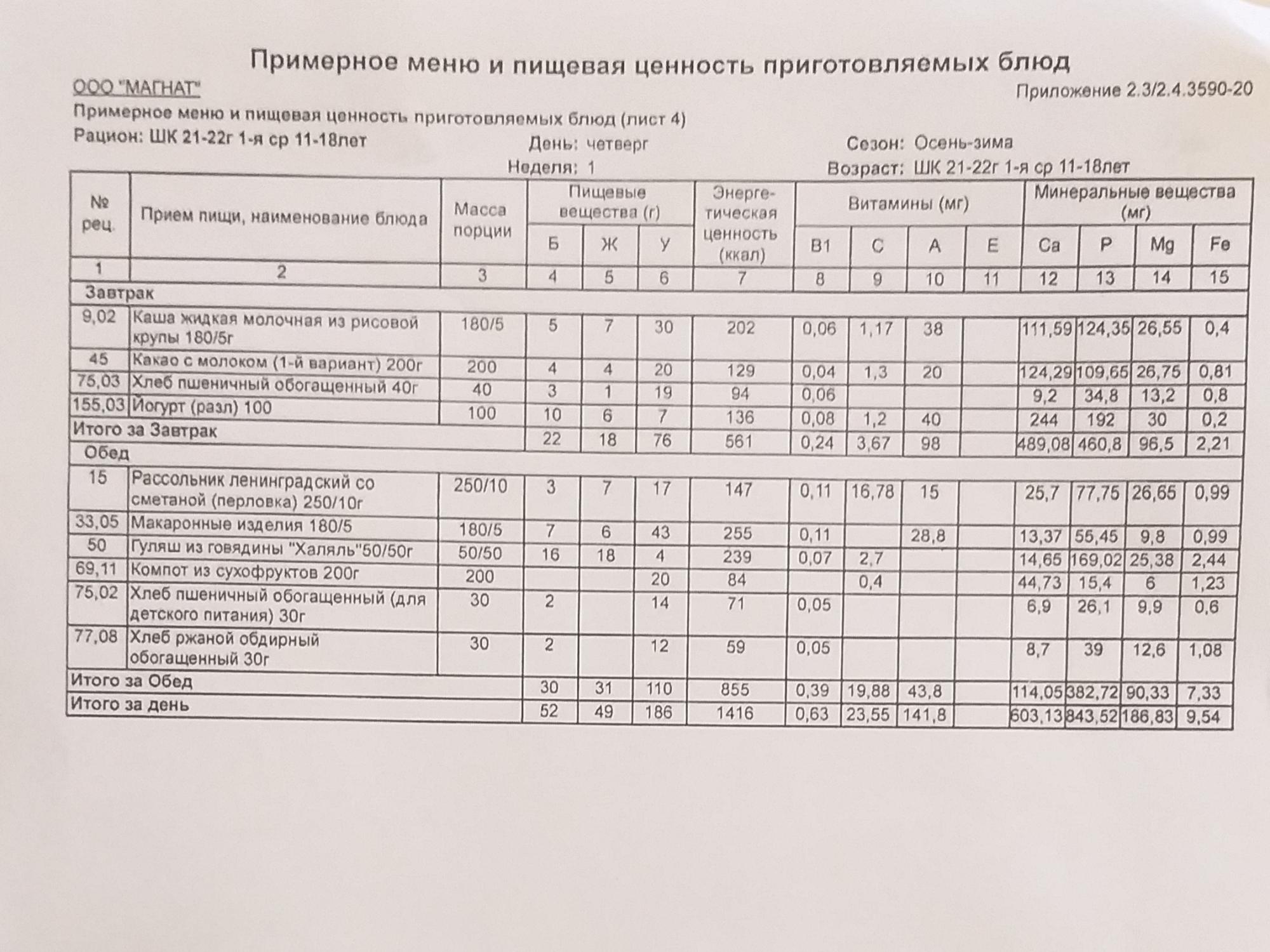 Организация питания в образовательной организации
